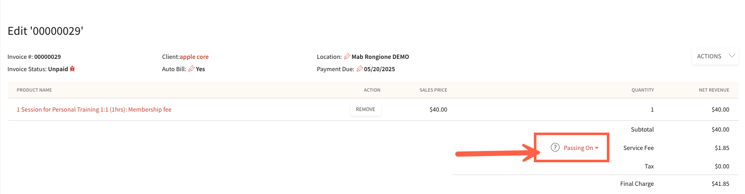 - Toggling Passing on Processing Fees for individual invoices