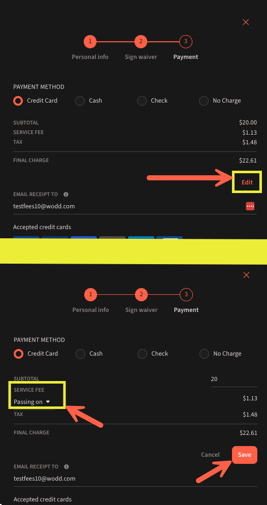 - Toggling Passing on Processing Fees for Point-of-Sale