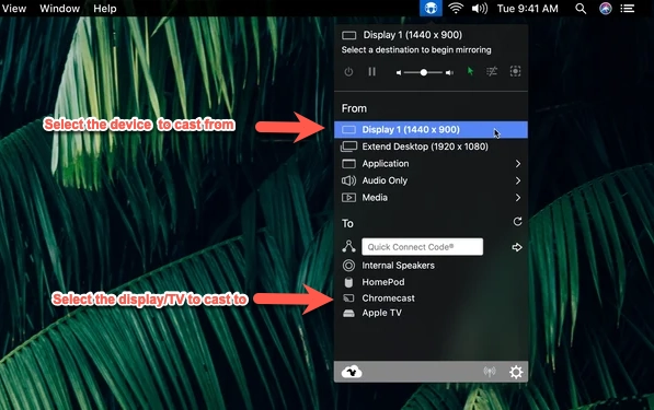 Ensure Mac and target TV/Apple TV are on the same Wi-Fi network.