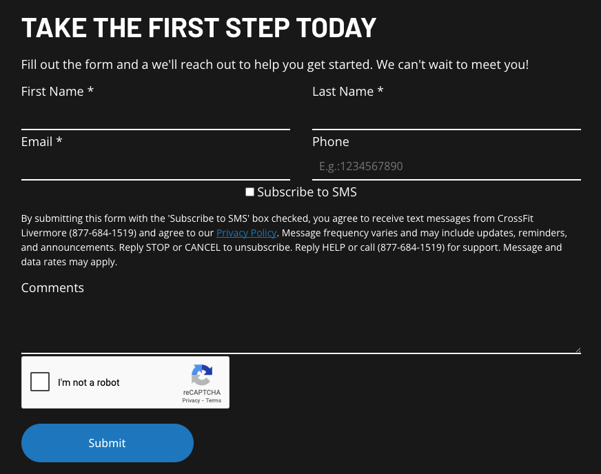 Opt-in flow images: Images of your opt-in flow should reflect that your website's Lead form is compliant with communications regulations. (If you used the Wodify-generated Lead form, it already is!)