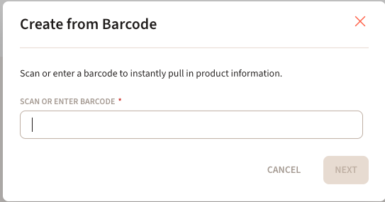 In Retail > Products, there is an option to create a product: 'Create from Barcode', which is also accessible from New Product page! This will open a ‘Create from Barcode' Modal: