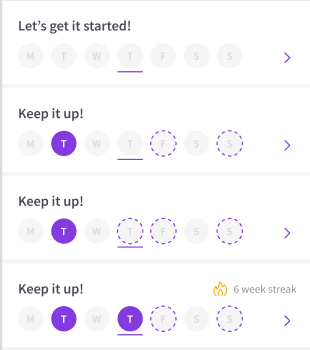 People are naturally competitive creatures and love the gratification of accomplishing small goals. Think back to any streak you've ever been a part of; a Duolingo learning streak or a Snapchat streak with a best friend. You probably were locked in on keeping the steak alive, even if you had a rough day or life got busy. This is why we introduced Weekly Streaks.