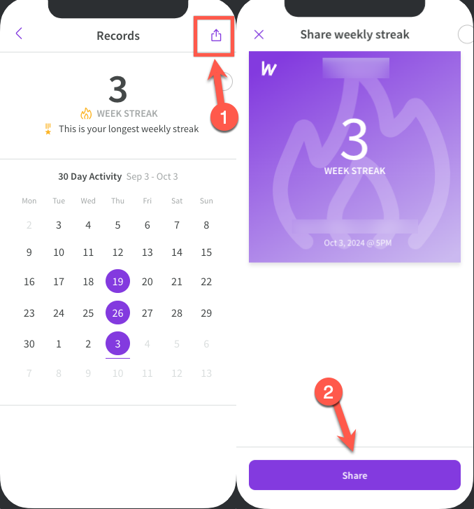 You can easily share your weekly streak to social media to celebrate your progress. You’ve earned it! After opening the Wodify app on your device, you can: