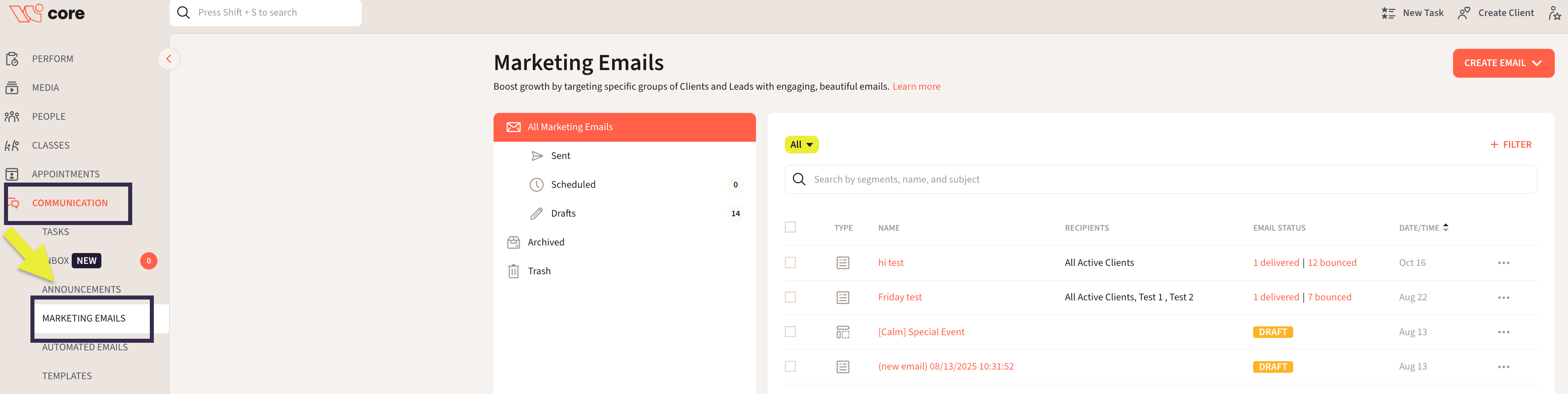 - Go to Communication > Marketing Emails
