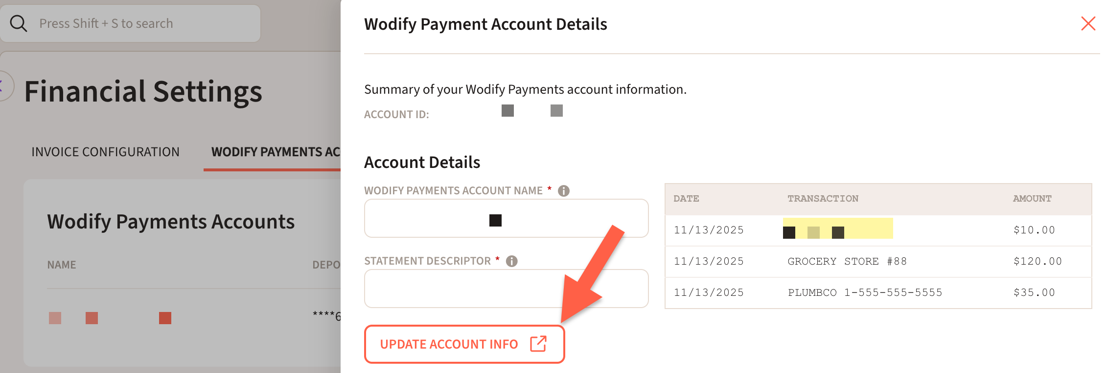 To edit your Wodify Payments account to make sure it is FinCEN compliant: