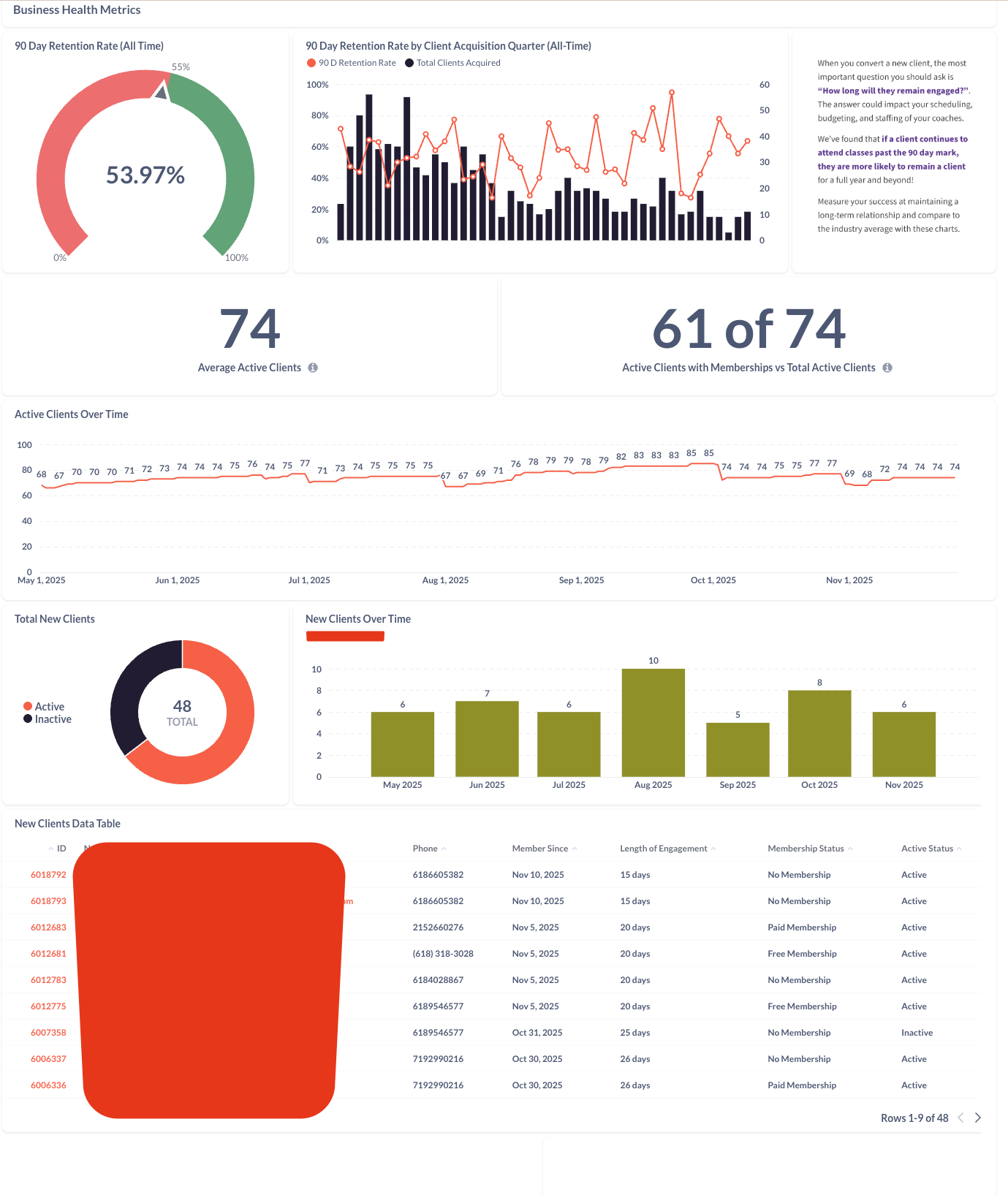 - What it means to your business: This allows you to track your total active clients over time. See your growth and be aware of any dips in client count.